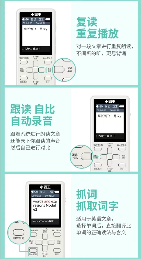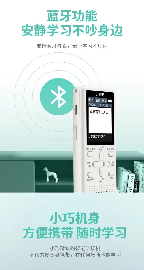 - 颜色分类:蓝牙版 16G 小学语文 英语,蓝牙版 16G 初中 语文 英语,蓝牙版 16G 高中 语文 英语,蓝牙版 32G 小学初中 语文 英语,蓝牙版 32G 初中高中 语文英语,蓝牙版 32G 小初高 语文英语