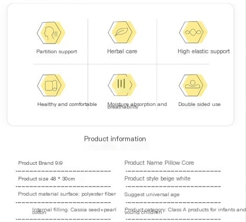 • Baby pillow core Cassia seed child pillow core Kindergarten pillow core All season cotton