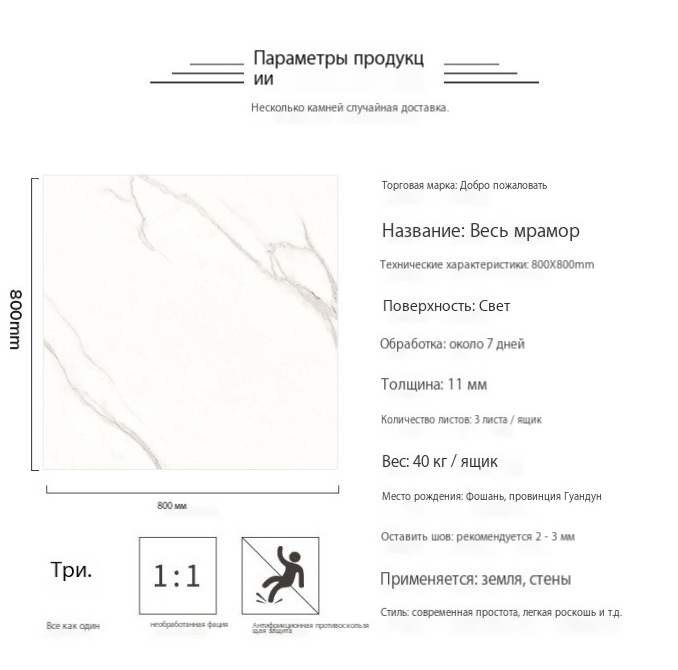 • Каррарская мраморная плитка с белым рисунком 800X800 мм для обустройства дома