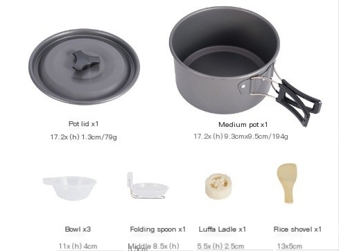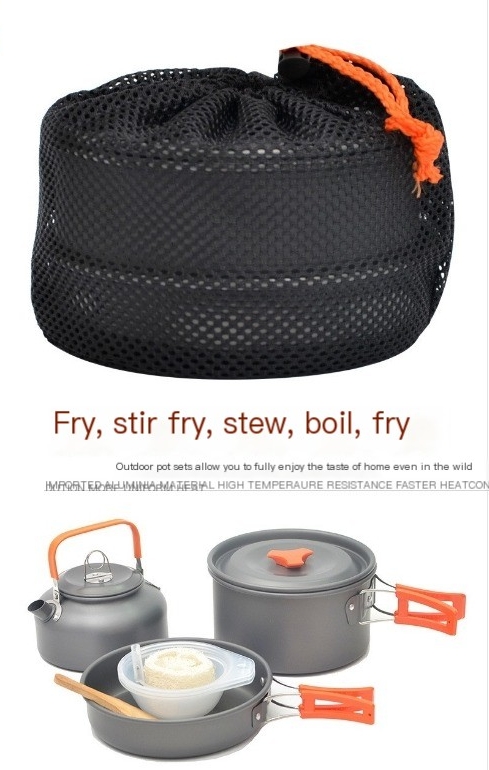 2-3 people camping teapot aluminum alloy pot camping campfire storage bag + tableware