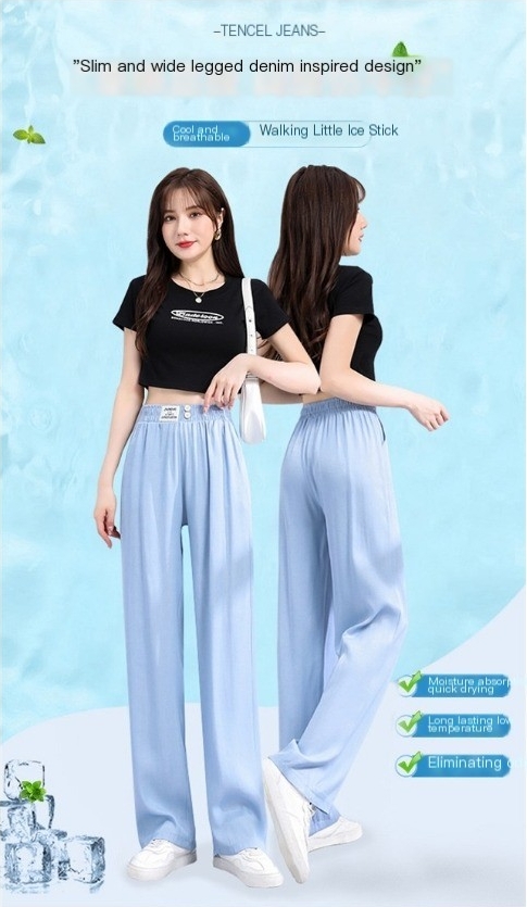 Tencel jeans women's ice silk wide leg pants women's floor pants