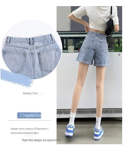 • Супер джинсовые шорты с завышенной талией Женские летние тонкие Новые весенние и осенние тонкие А-силуэт широкие брюки