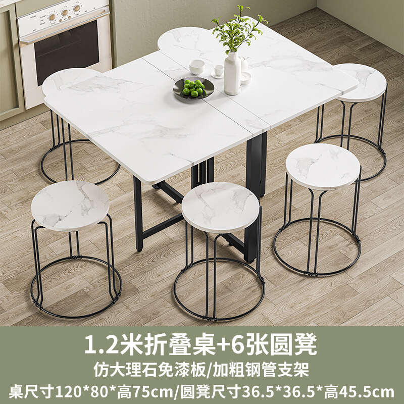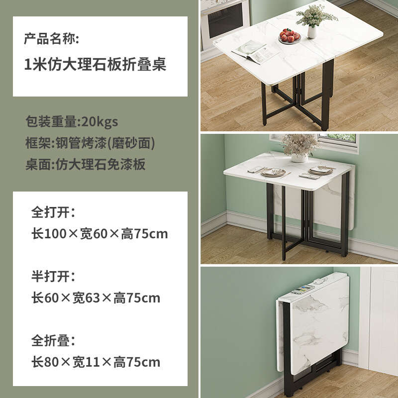 Folding dining table, small household, imitation rock board, ultra-thin, multi-functional combination dining table, rectangular folding table for multiple people